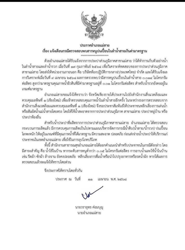 ဝၼ်းတီႈ 9/4/2025 ၼႆႉ လူင်ပွင်ၸိုင်ႈထႆး ပိုၼ်ၽၢဝ်ႇဝႃႈ ၼမ်ႉသၢႆလႄႈၼမ်ႉႁူၵ်းဢၼ်လႆၶႅၼ်ႈ တႃႈၶီႈလဵၵ်း – မႄႈသၢႆ လႅၼ်လိၼ်တႆး- ထႆးၼၼ်ႉ မီးသၢၼ်ၶမ်ႊမီႊၶိူဝ်ႊၼမ်ပူၼ်ႉ ဝႃႈၼႆ။