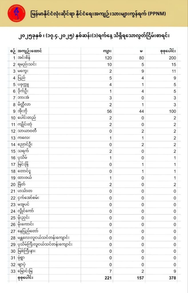 ၸုမ်းၸွႆႈထႅမ် ၵူၼ်းတူၵ်းၶွၵ်ႈၵၢၼ်မိူင်း AAPP ႁၢႆးငၢၼ်းပိုၼ်ၽၢဝ်ႇဢွၵ်ႇဝႆႉဝႃႈ တႄႇသိုၵ်းမၢၼ်ႈပိုၼ်ၽၢဝ်ႇယိုတ်းဢႃႇ ၼႃႇ ဝၢၼ်ႈမိူင်းမႃး ၶၢဝ်းတၢင်း 4 ပီပၢႆ ၵူၼ်းၸိူဝ်းထုၵ်ႇသိုၵ်းမၢၼ်ႈတီႉ ၺွပ်းၵႂႃႇ မီး 29030 ၵေႃႉ။ ၼႂ်းၼၼ်ႉ တႃႇၵူၼ်း 22197 ၵေႃႉ ယင်းတိုၵ်ႉထုၵ်ႇသိုၵ်းမၢၼ်ႈၵုမ်းၵမ်ဝႆႉသေ တႃႇ 10769 ၵေႃႉသမ်ႉ ၺႃးတူတ်ႈတၢမ်ႇတူၵ်းၶွၵ်ႈဝႆႉ ဝႃႈၼႆ။