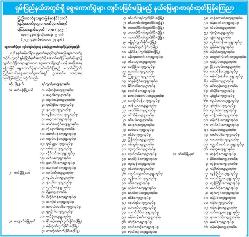 ၼႂ်းၸႄႈဝဵင်းမၢၵ်ႇမၢင်ၼႆႉ ပႃး 17 ဢိူင်ႇ၊ ၸႄႈဝဵင်းၾၢႆၶုၼ် ပႃး 10 ဢိူင်ႇ၊ ၸႄႈဝဵင်းၵျွၵ်ႉမႄး ပႃး 76 ဢိူင်ႇ ၸႄႈဝဵင်းသီႇပေႃႉ ပႃး 50 ဢိူင်ႇ ႁူမ်ႈသဵၼ်ႈ ပဵၼ် 153 ဢိူင်ႇ။ တင်းမူတ်း ႁူမ်ႈၵၼ်ၼႆႉ ပဵၼ် 1064 ဝၢၼ်ႈ ဝႃႈၼႆ။