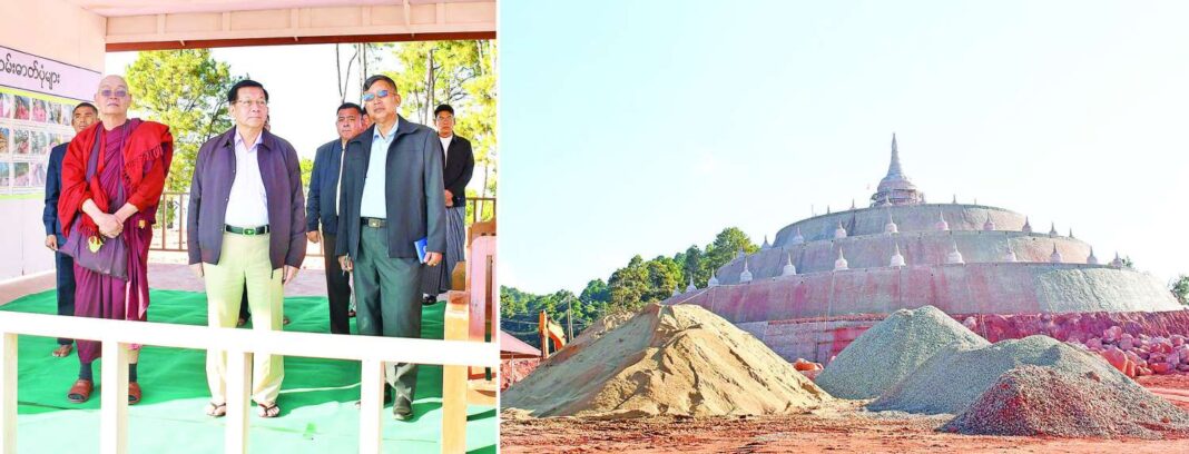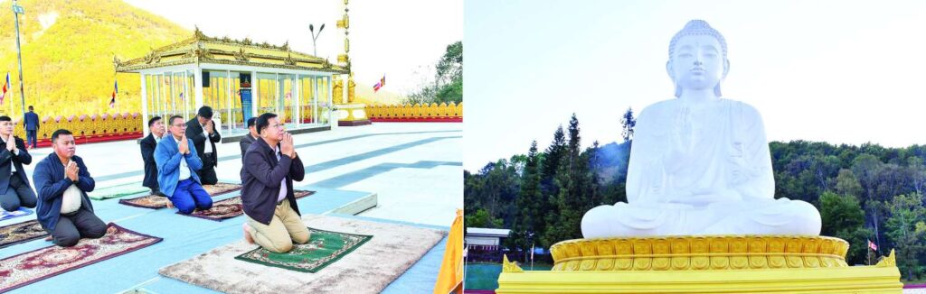 မိၼ်းဢွင်ႇလၢႆႇၼႆႉ လူင်းတူၺ်း ၵၢၼ်ၵေႃႇသၢင်ႈ ၵွင်းမူး “လောကသရဖူ” ဢၼ်မုင်ႉႁေႃႁိူၼ်းမၼ်း ထႃႇပၼႃႇတုမ်ႇသႅင် (သရဖူ) ဝႆႉတီႈၼႂ်းဝၢင်းသူၼ်ပုတ်ႉထ ၸဝ်ႈသြႃႇၽတ်ႉတၼ်ႇတ ၵေႃးဝိတ (ႁိုဝ်) ၸဝ်ႈဝၸီႇပဵၵ်ႉ တီႈဝဵင်းၵဵင်းတုင် ၼႆယဝ်ႉ။