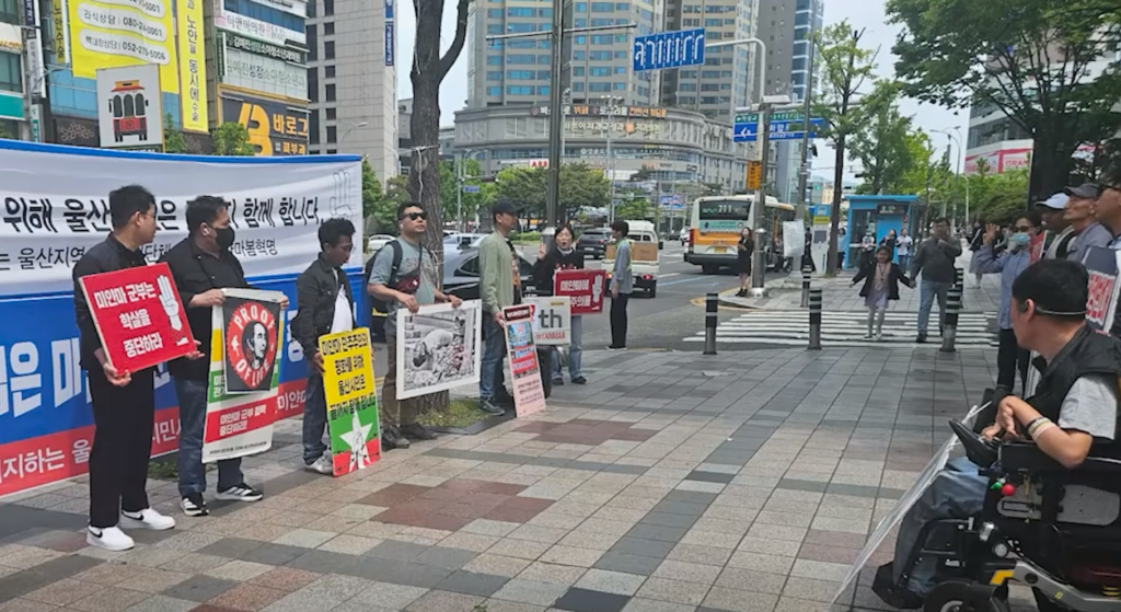 ၵူၼ်းမိူင်းမၢၼ်ႈၸုမ်းၼၼ်ႉ ယိပ်းတင်းပၢႆႉဢၼ်တႅမ်ႈဝႆႉဝႃႈ “Proof of Life” ၊ “Free Aung San Su Kyi” ၊ “Stand Up For Freedom” ၼႆၸိူဝ်းၼႆႉလႄႈသင် ယိပ်းတင်းၶႅပ်းႁၢင်ႈဢွင်ႇသၢၼ်းၸူႉၵျီႇသေလႄႈသင် တုၵ်းယွၼ်းႁႂ်ႈလုမ်ႈၾႃႉလႆႈႁၼ်သေပၼ်ႁႅင်းဢီးသိုၵ်းမၢၼ်ႈ ႁႂ်ႈသိုၵ်းမၢၼ်ႈဢဝ်ဢွင်ႇသၢၼ်းၸူႉၵျီႇ ဢွၵ်ႇမႃးၼႄၵူၼ်းမိူင်းဝႆးဝႆး ဝႃႈၼႆ။